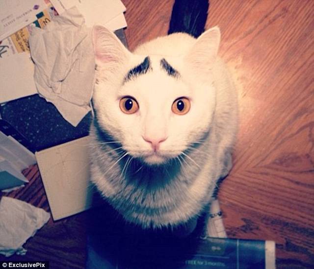 Sam the cat has only one expression thanks to his 'eyebrows' - worried, His good humoured owner has posted 50 pictures of him online which have earned him worldwide internet fame. He may have nine lives, but thanks to his unusual fur markings, Sam the cat has only one expression - worried. The mystified moggy has become an internet sensation after his owner set up a page dedicated to him and his 'eyebrows'. The feline, believed to be from New York, has more than 10,000 followers on picture sharing site Instagram, with his quizzical expression earning him world wide fame.
